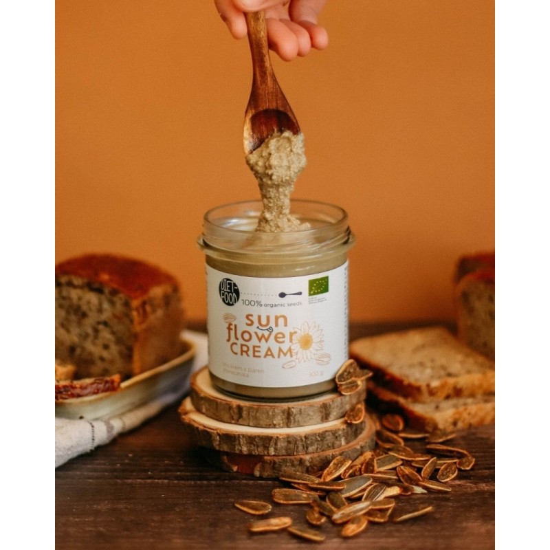 Natural, ecologically certified sunflower seed cream, without any additives, prepared only from roasted sunflower seeds.