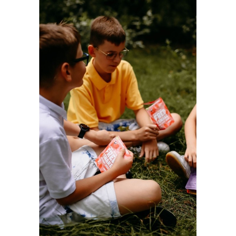 Our jellies are made from 100% organic fruits sourced from certified orchards. They are completely vegan and free from artificial flavors, colors, preservatives, and flavor enhancers. In Fred The Snake jellies, you’ll find only natural sugars derived from fruits—without any added white sugar or glucose-fructose syrup. Thanks to their convenient packaging, these colorful, fruity jellies can be easily packed into a backpack or lunchbox.