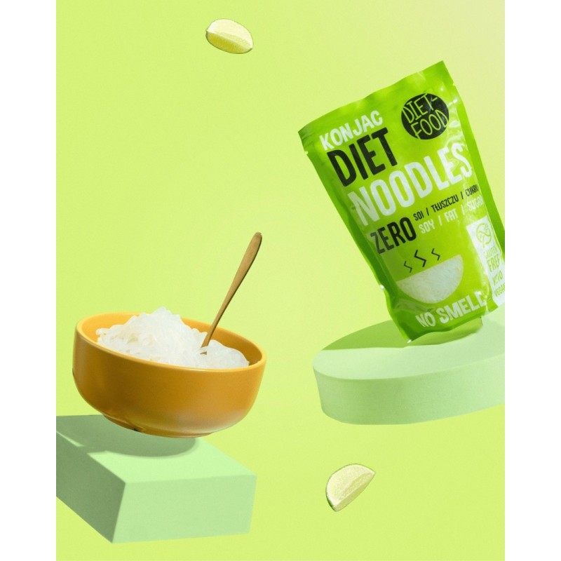 Głównym składnikiem Diet Noodles jest Glukomannan konnyak - rozpuszczalny w wodzie błonnik pochodzący z korzenia rośliny Konnyak. Oryginalnie pochodzi ona z Azji, a żywność z niej produkowana nosi również nazwy: Shirataki Noodles lub Konnyaku Noodles. Największymi konsumentem tej żywności na świecie są Japończycy.