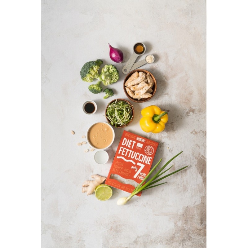 Makaron konjac to naturalny produkt, bogaty w rozpuszczalny błonnik, bez tłuszczu, cukru, skrobi i białka, bez pszenicy i glutenu. Nie ma własnego smaku, dzięki czemu łatwo wchłania aromat dodatków i przypraw, jest szybki w przyrządzeniu, smaczny i zdrowy.