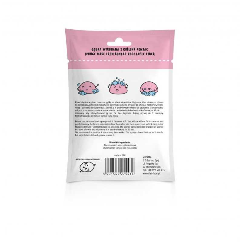 Gąbka wykonana z rośliny konjac. Wspaniale oczyszcza, złuszcza i odświeża. Skóra pozostaje naturalnie nawilżona. Przywraca skórze naturalne pH. Zawiera glinkę różową - do skóry zmęczonej i odwodnionej. Przed użyciem wypłucz i namocz gąbkę, aż stanie się miękka. Użyj samą lub z ulubionym płynem do demakijażu, delikatnie masuj twarz okrężnymi ruchami. Wypłucz po użyciu, a następnie wyciśnij wodę i powieś do wyschnięcia. Zawieś ją w przewiewnym miejscu do osuszenia. Gąbkę możesz odkazić przez umieszczenie w misce z wodą i wstawić do kuchenki mikrofalowej na 90 sekund. Zalecamy, aby zdezynfekować ją raz na dwa tygodnie. Gąbkę używaj do 3 miesięcy, lecz gdy zaczyna się łamać, wymień ją na nową.