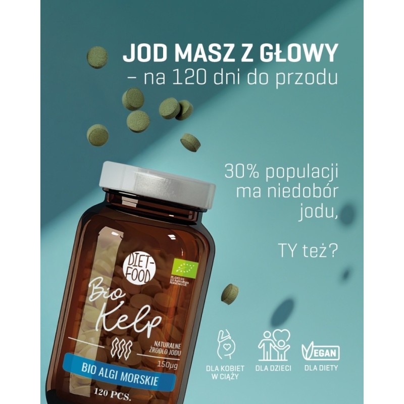 - bio kelp (Ascophyllum nodosum) - naturalne źródło jodu