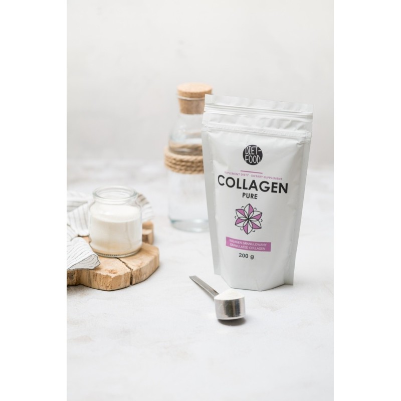 Hydrolizat Kolagenu Diet-Food to jedno z lepszych źródeł łatwo przyswajalnych dla organizmu białek kolagenowych. Kolagen może być stosowany zarówno przez osoby aktywne fizycznie, jak i osoby troszczące się o swoje włosy, skórę, paznokcie, kości i stawy. Kolagen stanowi aż 30% całkowitej masy białka ludzkiego i 70% masy białek w samej skórze.