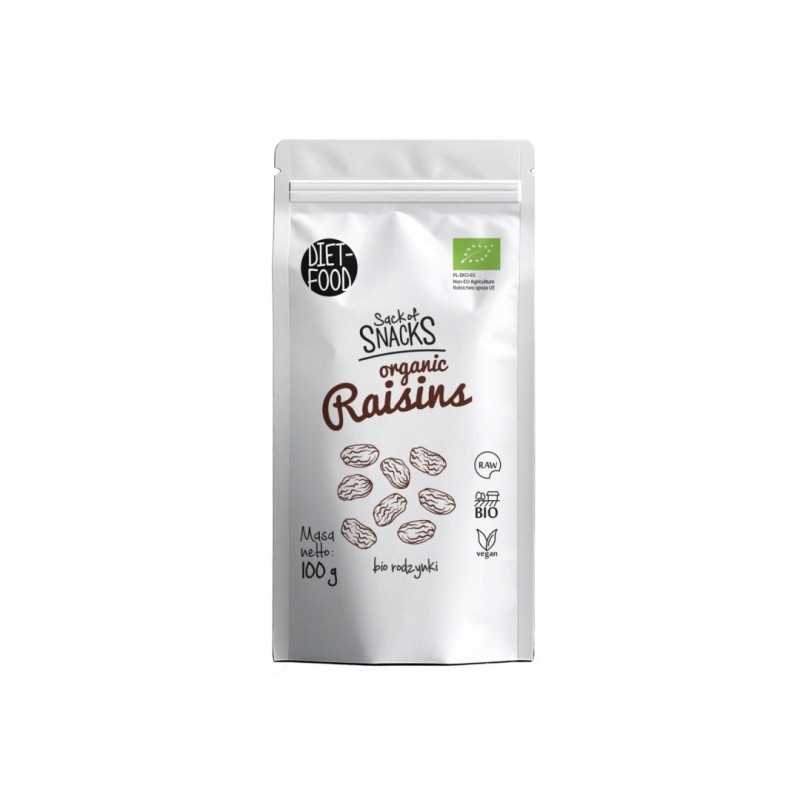 Sack of Snacks to seria ekologicznych przekąsek. Rodzynki to suszone winogrona. Jednak w przeciwieństwie do świeżych winogron są one rzeczywiście bogatymi i skoncentrowanymi źródłami energii, witamin, elektrolitów i minerałów. W porównaniu z wagą 100 g suszonych winogron zawiera 249 kalorii, kilka razy więcej błonnika, witamin, minerałów i przeciwutleniaczy polifenolowych niż świeże winogrona. Bio rodzynki sułtanki doskonałe są jako samodzielna przegryzka oraz jako wzbogacający smakowo dodatek do wypieków, deserów i sałatek.