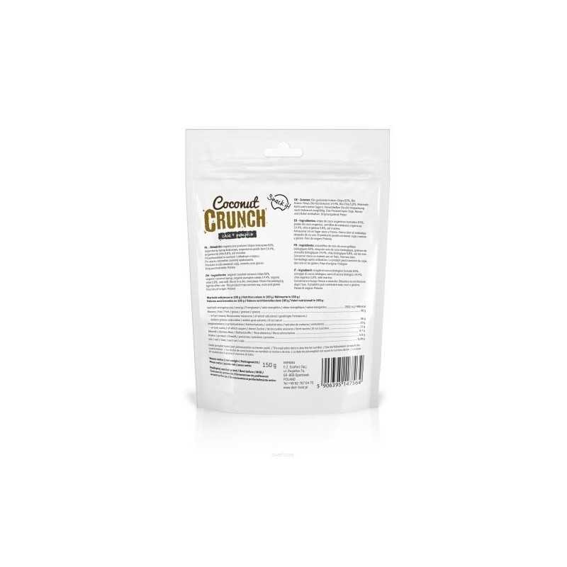 Bio Coconut CRUNCH to 100% naturalna, chrupiąca przekąska na bazie prażonych chipsów kokosowych z dodatkiem nasion chia oraz pestek dyni. Bio Coconut CRUNCH to idealna przekaska dla dzieci i dorosłych.