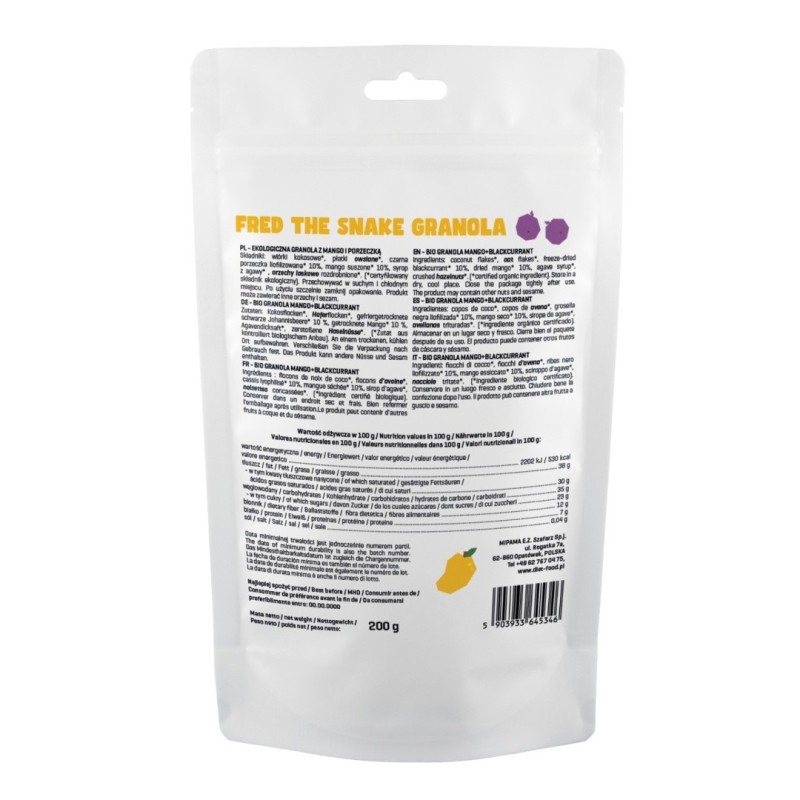 Bio Granola Fred The Snake - Mango i Czarna Porzeczka 200 g